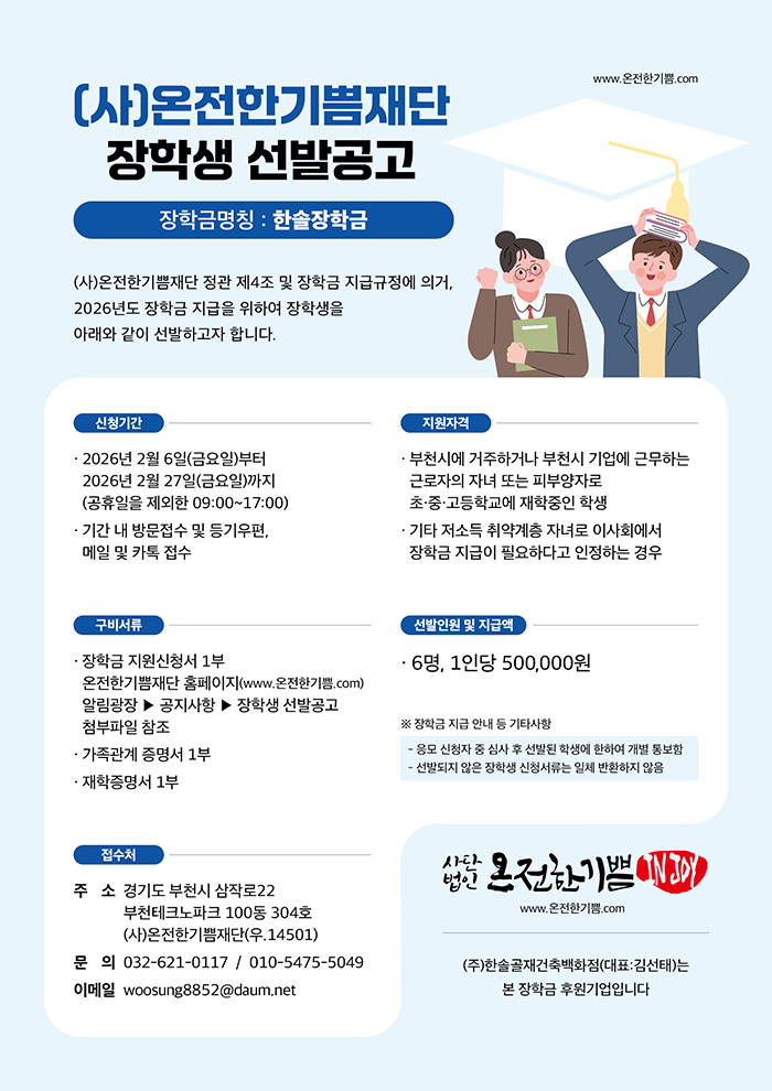 온전한기쁨재단 장학생 선발공고