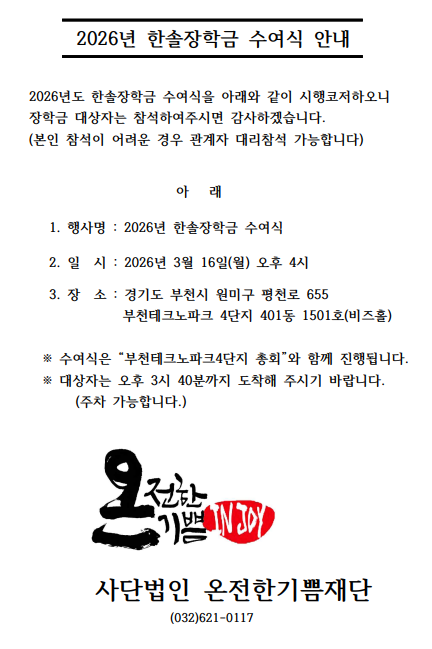 2026년도 한솔장학금 수여식 안내